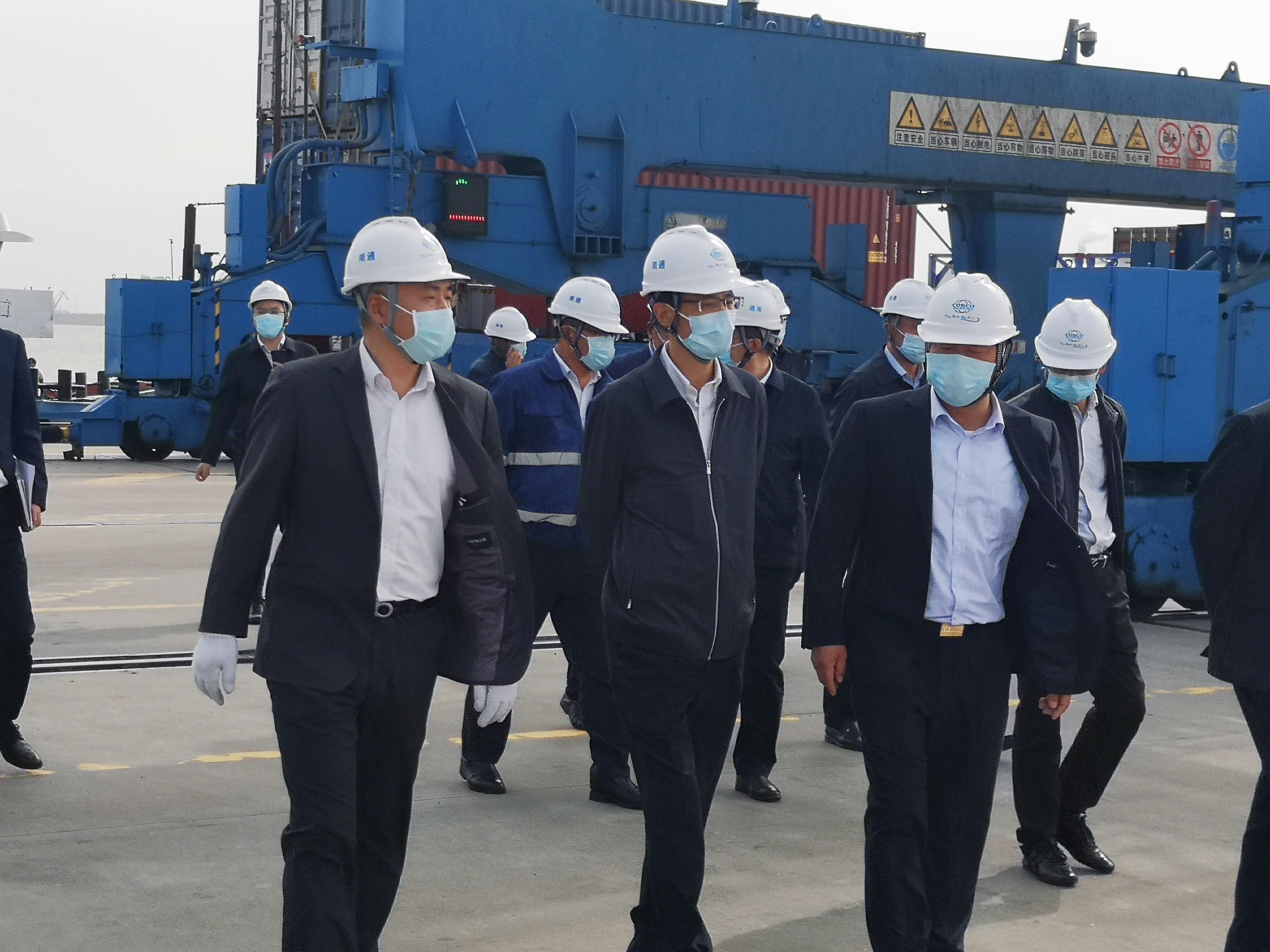 童劍一行在港區(qū)現(xiàn)場聽取了南通通海港口有限公司黨委書記、董事長許穩(wěn)林關(guān)于公司疫情防控、保通保暢與復工復產(chǎn)的情況介紹,并實地察看了碼頭一線安全生產(chǎn)措施落實和外貿(mào)船舶作業(yè)專班閉環(huán)管理情況。