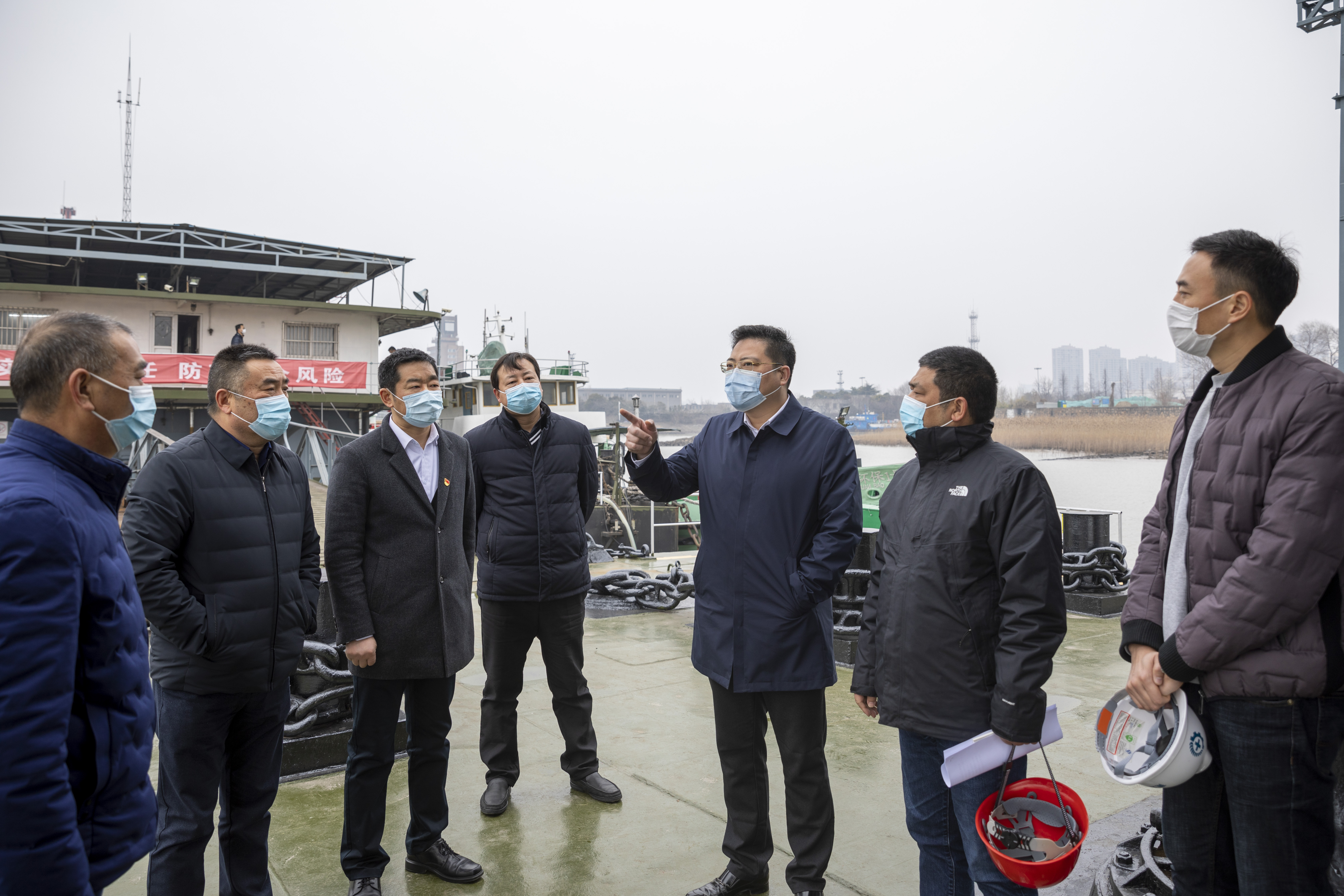 檢查組一行來(lái)到輪駁公司任港基地,聽(tīng)取了公司關(guān)于安全生產(chǎn)、疫情防控等專項(xiàng)工作匯報(bào),實(shí)地查看了防疫物資儲(chǔ)備等情況。在躉船辦公室,潘世華詳細(xì)了解拖輪作業(yè)情況及日常巡檢安全細(xì)節(jié),仔細(xì)詢問(wèn)當(dāng)班人員工作情況,鼓勵(lì)大家立足崗位、踏實(shí)工作,為安全生產(chǎn)保駕護(hù)航。